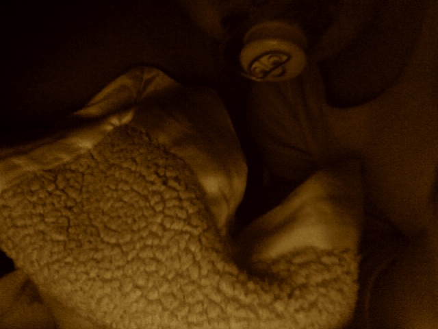 And there are tears. She throws her paci over the side of the crib and sobs. She strokes her blankie for a full minute, whispering sweet nothings to her purple matted lover.