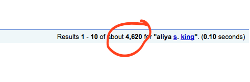 And then, I use that pesky middle initial. Which means you could do a search for Aliya S. King.