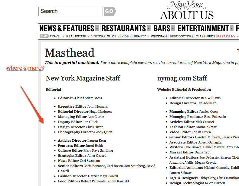 Marc writes for New York. So my first step was to check out the website: