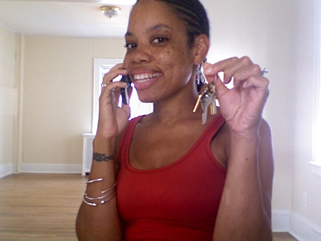 Calling my mom, two seconds after the closing. Little did I know, a year later, I'd still have no furniture. And thirty minutes after this picture was taken, raw sewage started coming out of my kitchen sink. Nice!