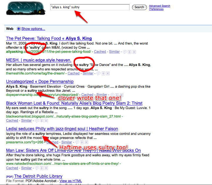 LOL @ Aliya’s “sultry” usage. It is the definitive adjective for soul singers. What will you do now that you’ve banned it?
