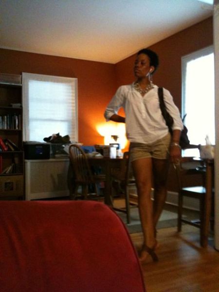 On Tuesday, I got a mani-pedi and had lunch with my bestie Portia. I invested in a pair of wedges so that I could be comfortable and still give myself a little umph and height. Do you approve of the shoes? I love them. I feel a lot more pulled together in them. About the outfit: The shirt actually belongs to TG. It’s from J. Crew and it’s a million years old. The shorts are from Target. And they’re too big. But I won’t stop wearing them because I don’t have enough shorts. Do I pass inspection?