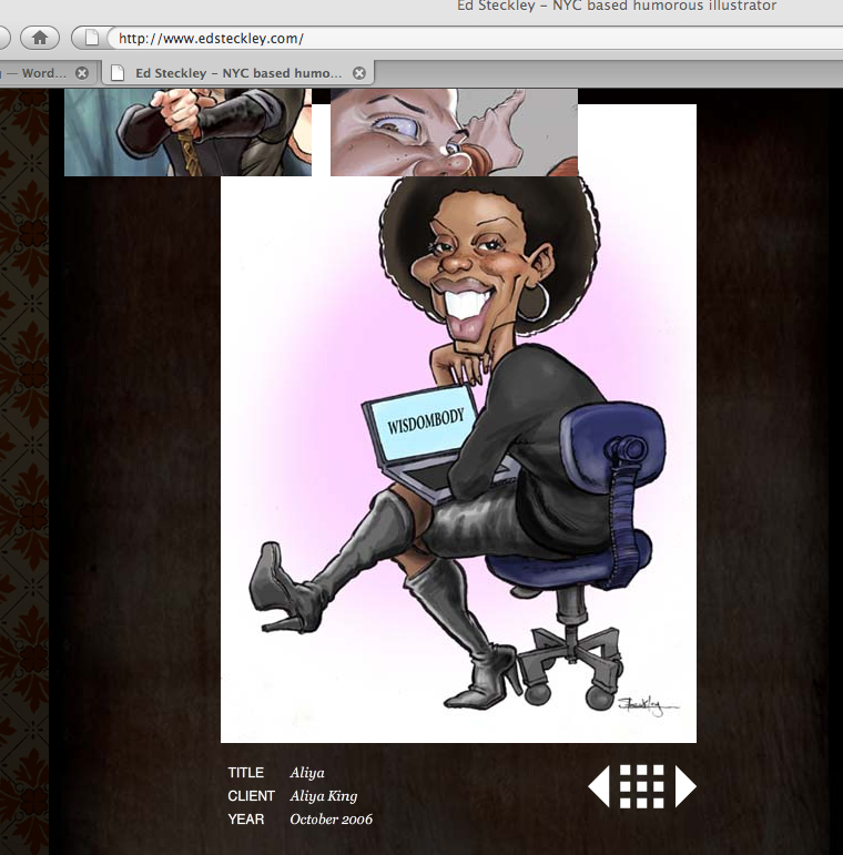 For a few years, I used a caricature I had commissioned from artist Ed Steckley. I can’t find the image. But luckily, Ed’s got it up on his website: